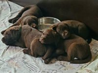 Am 31.05.2021 sind 7 braune Welpen von Coco zur Welt gebracht worden. Es sind 2 Rüden, Jasper und Jago und 5 Hündinnen, Josy, Jessy, Jojo, Jara und Juno. Mutter und Welpen geht es gut, die Kleinen haben sogar schon zugenommen. Wir sind ganz stolz auf unsere Coco.
