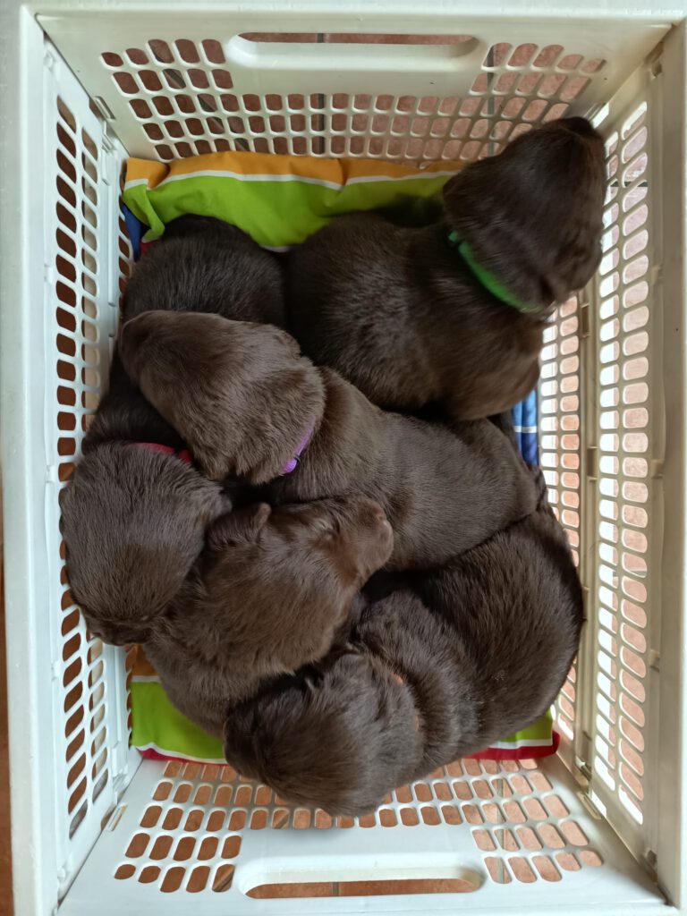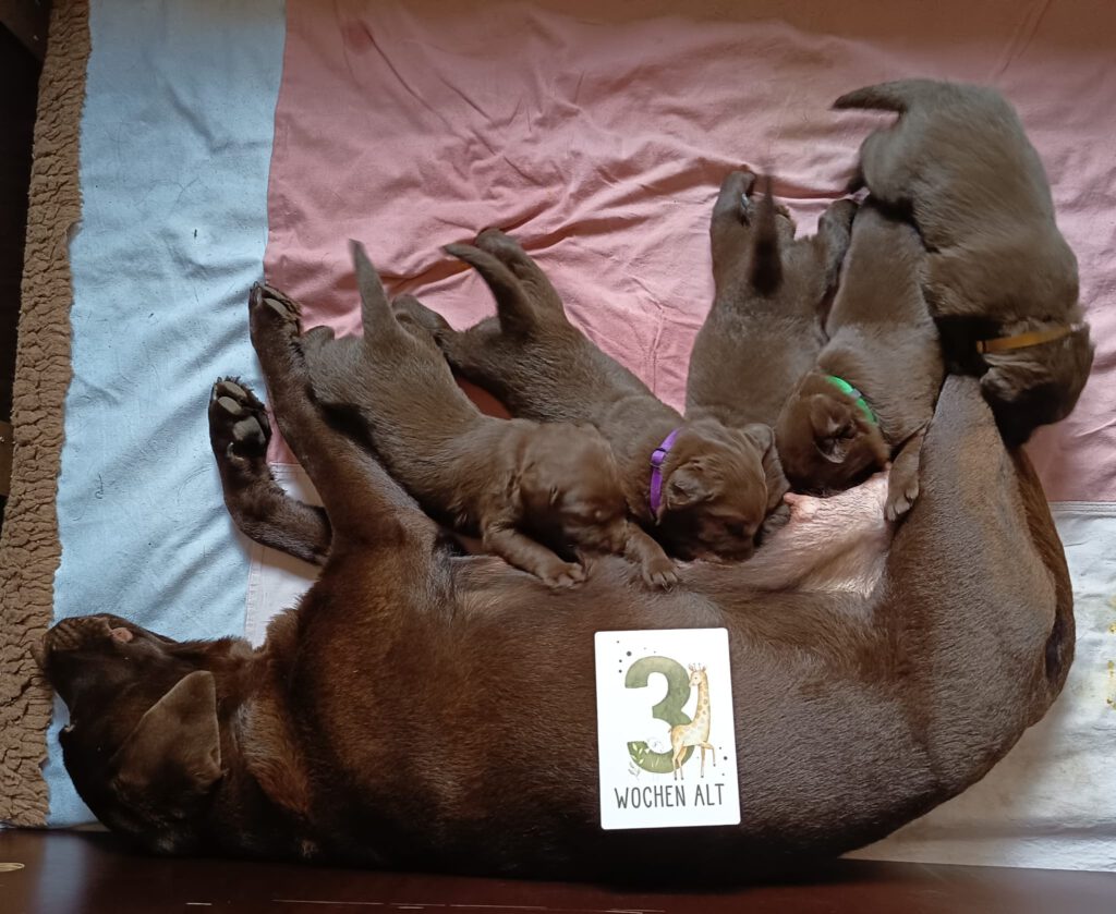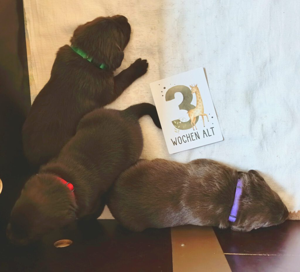 Die Zeit vergeht wie im Flug: Unsere Welpen aus dem O-Wurf von Hetty und Gameshine Thor sind jetzt drei Wochen alt – und neugierige Augen blicken uns entgegen. Sie wackeln fröhlich durch ihre Box, entdecken ihre Geschwister und zeigen schon deutlich ihre kleinen Charaktere.