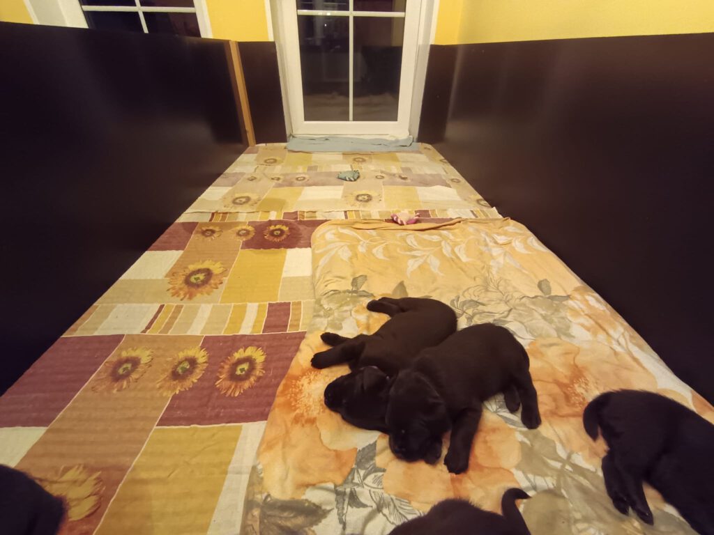 Vier Wochen sind vergangen, seit unsere Hetty ihren O-Wurf zur Welt gebracht hat – und die Kleinen werden immer aktiver. Gestern durften sie in ihre größere Welpenbox umziehen, und seit heute ist auch der Außenbereich geöffnet.